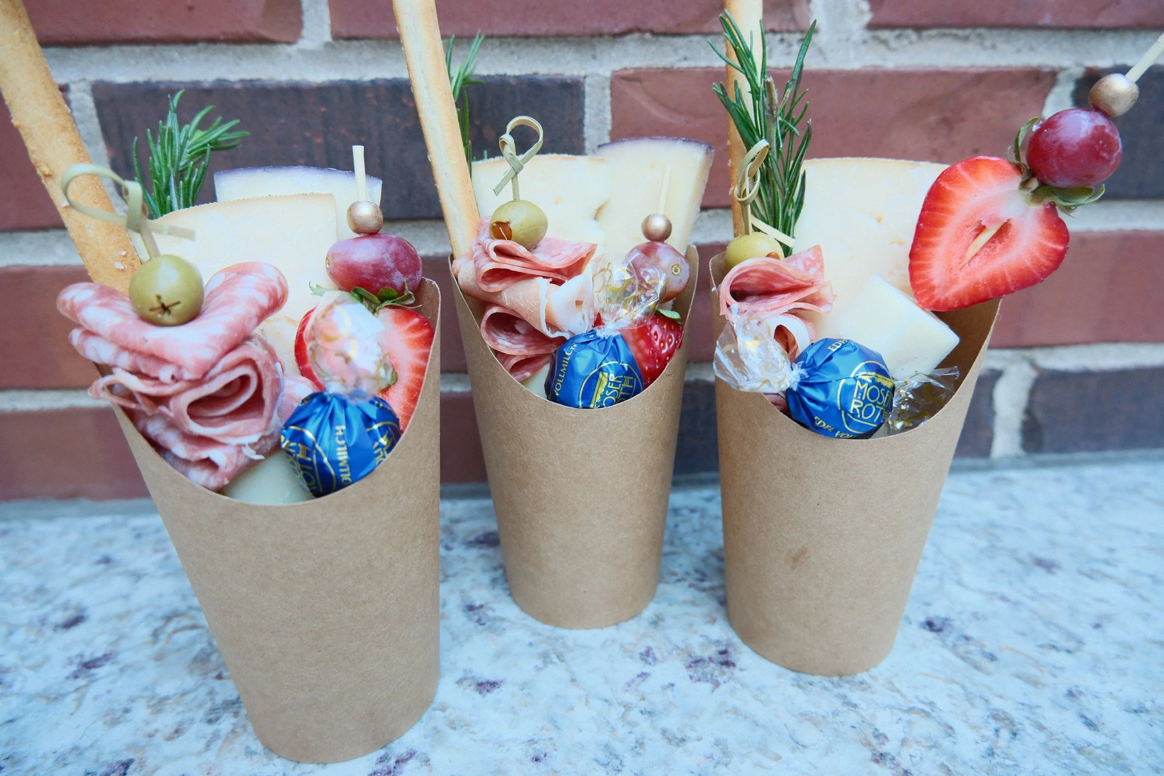Pre-made charcuterie cups dropped off and set up at your event. Cups include a combination of meats, cheeses, nuts, fresh & dried fruits, and a sweet treat to top it off.